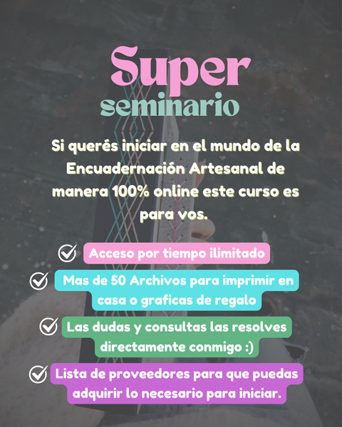 Este Seminario te da acceso a 3 Cursos completos donde aprenderás 5 Técnicas de Encuadernación artesanal, empezando desde 0 sin necesidad de tener ningún conocimiento previo. El acceso es por tiempo ilimitado, y también vas a sacarte las dudas que surjan conmigo.